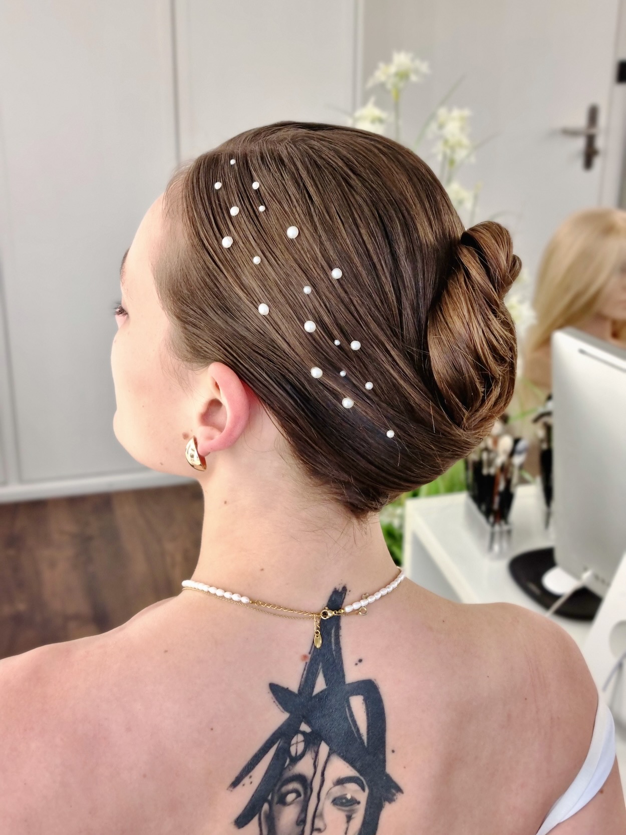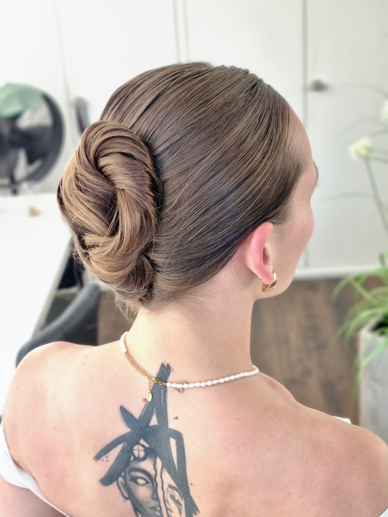 Ob romantischer Low Bun, moderner French Twist oder elegante Wellen, mit viel Liebe zum Detail style ich dein Haar so, dass es perfekt zu dir und deinem Anlass passt. Dank meiner Hair Expert Ausbildung biete ich dir moderne sowie klassische Stylings, die nicht nur wunderschön aussehen, sondern auch zuverlässig halten.